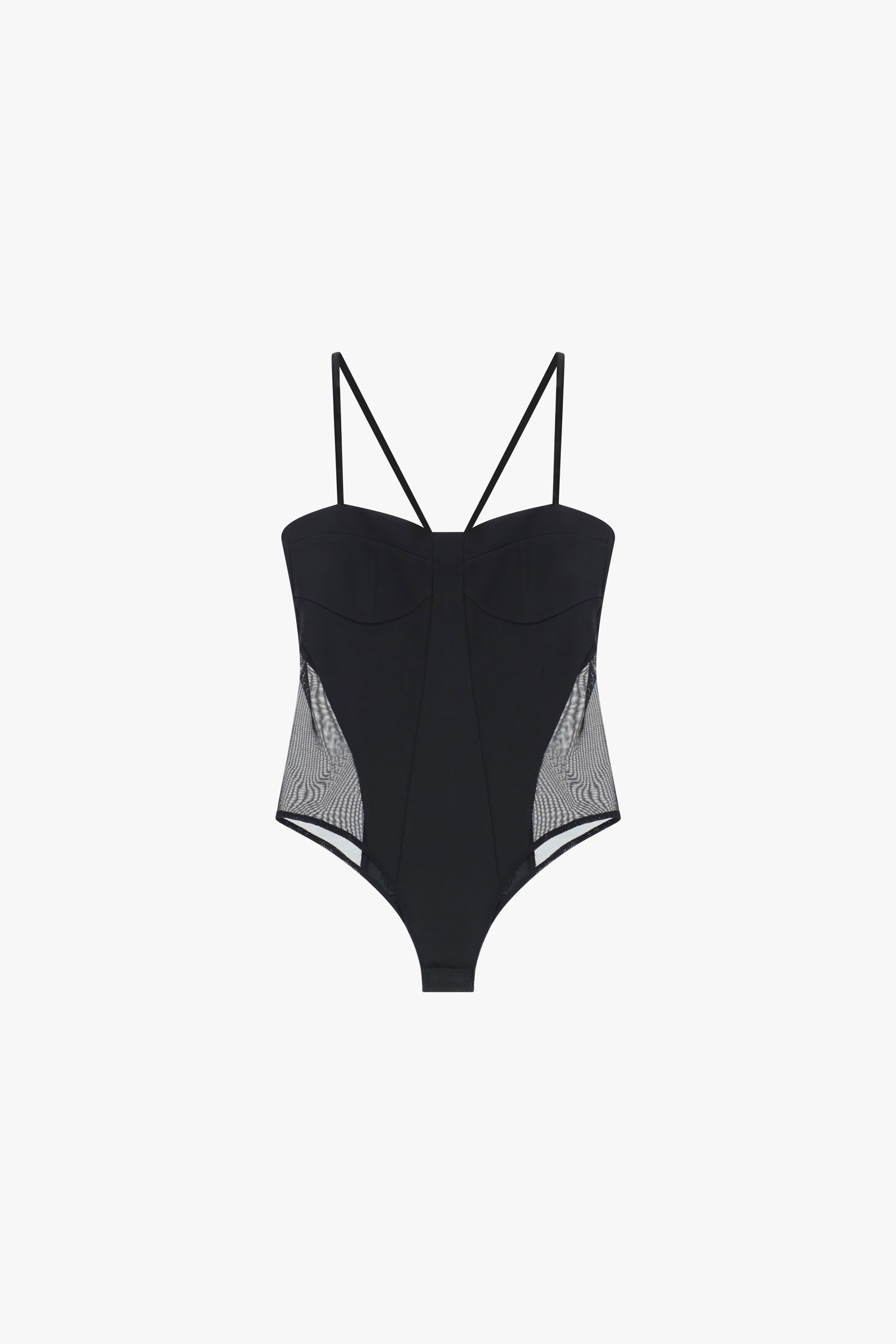 Body con spalline sottili e pannelli laterali in rete