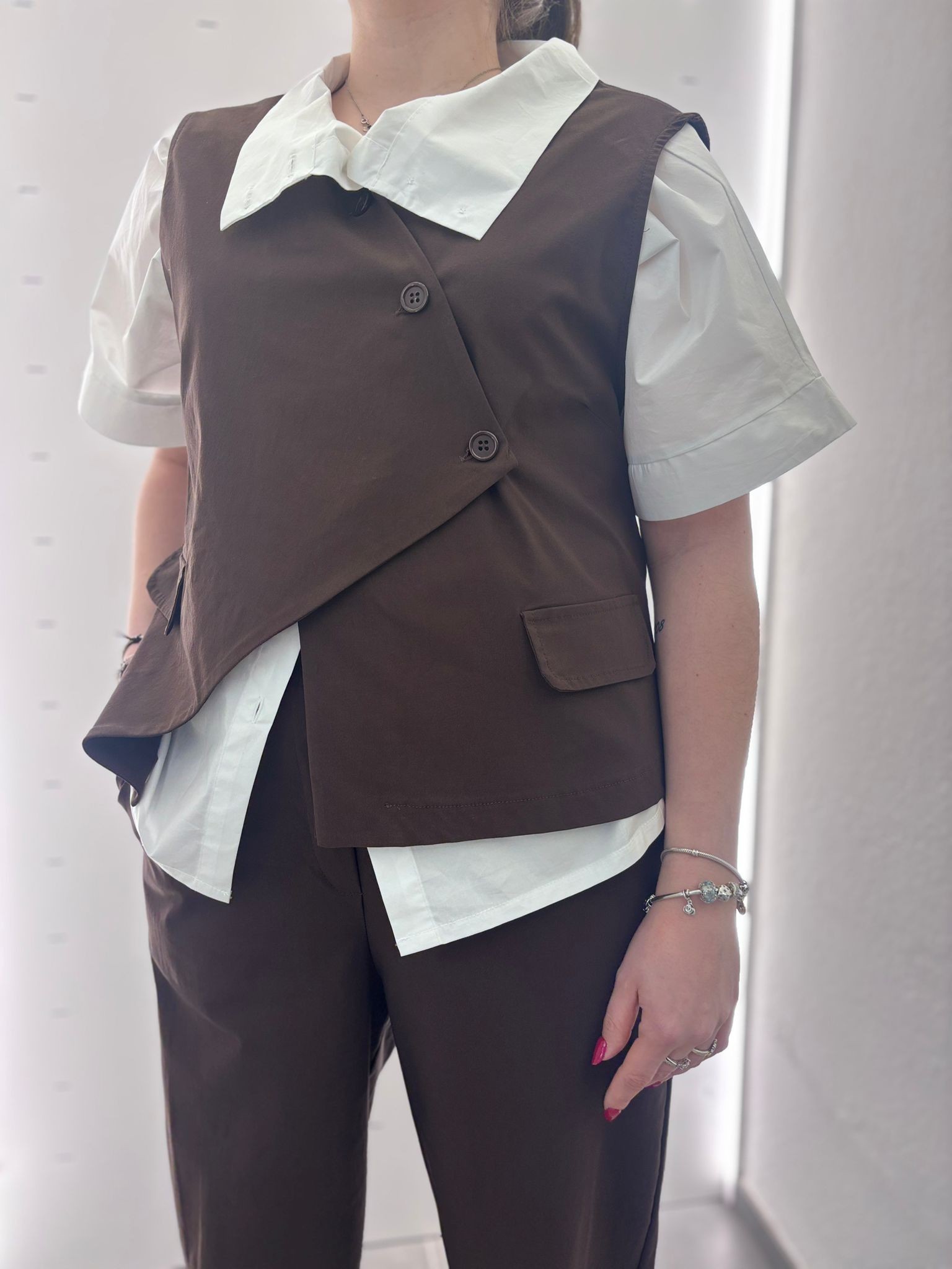 gilet in cotone con abbottonatura asimmetrica