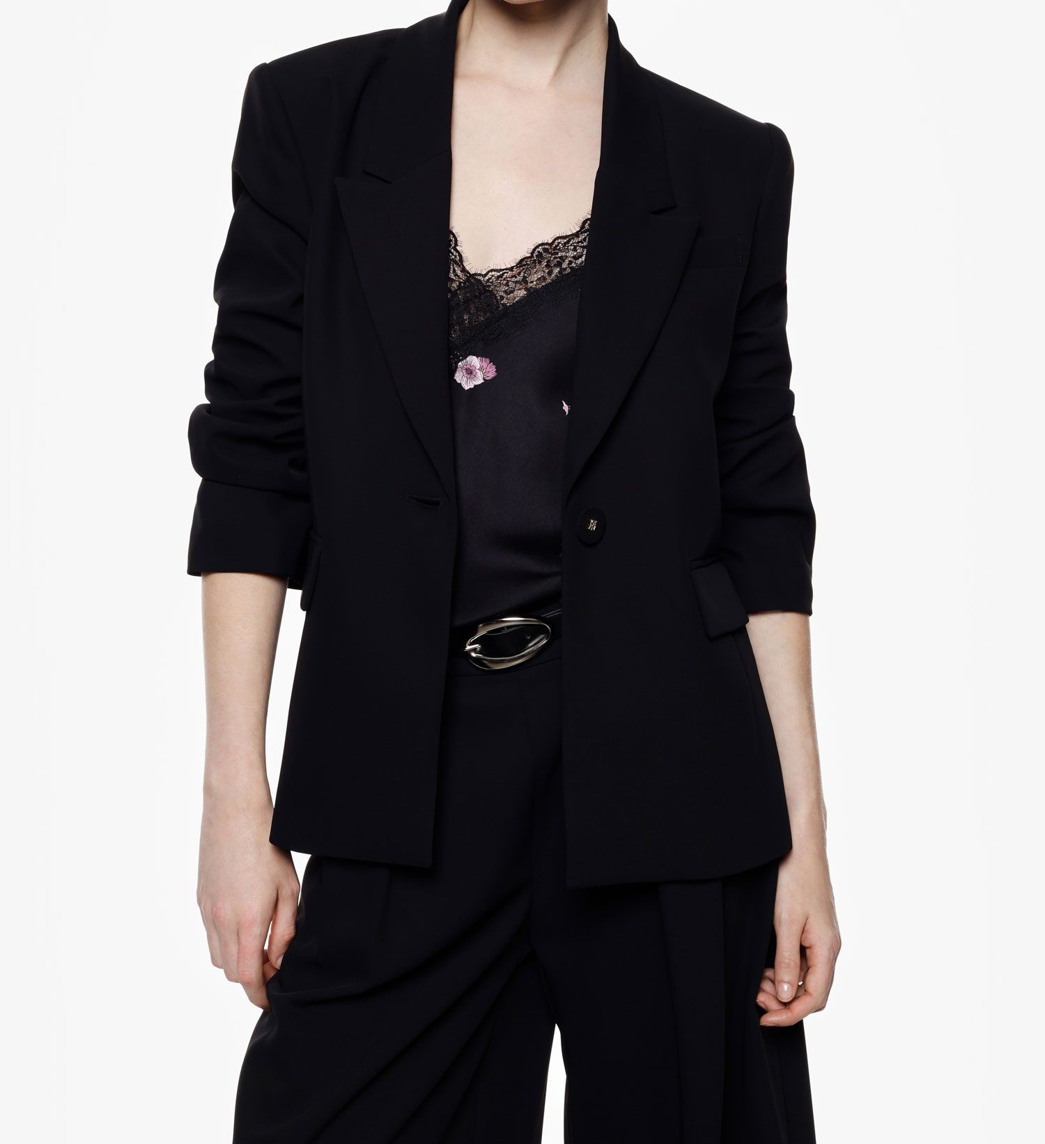 Un blazer che esprime raffinatezza e sobrietà, ideale per chi cerca un look formale con un tocco di originalità. La chiusura a bottoni singoli e le tasche offrono funzionalità e praticità, rendendo questo capo perfetto per l'ufficio o incontri formali. Un design che si sposa con ogni guardaroba, donando un’allure sicura e sofisticata.