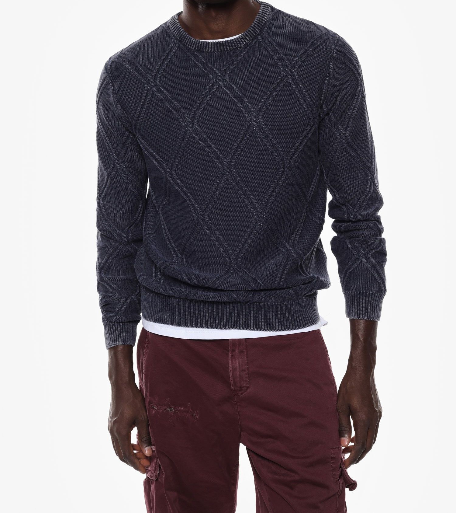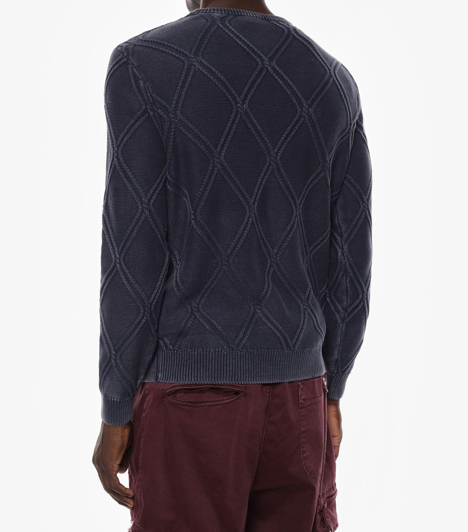Questo maglione a rombi offre una perfetta combinazione di stile e comfort. Caratterizzato da un elegante scollo rotondo e maniche lunghe, si adatta perfettamente a un look quotidiano sofisticato, progettato per i gusti raffinati di chi vive in una città metropolitana. Il motivo a rombi aggiunge un tocco di individualità, permettendo una personale espressione di stile.